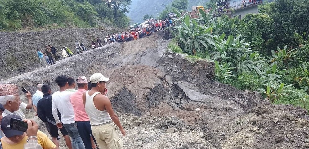 जिल्ला प्रहरी कार्यालयका प्रहरी नायब उपरीक्षक एवं प्रहरी प्रवक्ता इन्द्रबहादुर रानाका अनुसार गए राति सडक भासिएको हो।