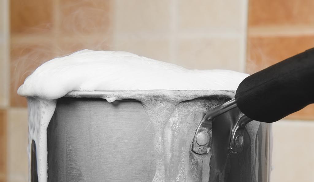 यो क्रममा दूधमा रहेको पानीको आयातन बढ्दै जान्छ र यसले माथिल्लो भागलाई धकेल्दै लैजान्छ । यो प्रक्रिया बढ्दै जाँदा माथिल्लो पत्र भाँडो बाहिर निस्कने गर्छ र बाँकी भएको दूध भाँडोमा नै उम्लिरहन्छ ।