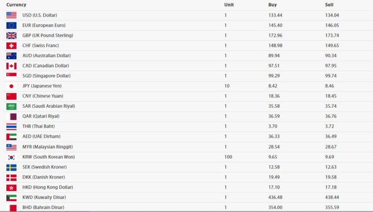 अमेरिकी डलर एकको खरिद दर १३३ रुपैयाँ ४४ पैसा र बिक्री दर १३४ रुपैयाँ ०४ पैसा पुगेको छ। युरो एकको खरिद दर १४५ रुपैयाँ ४० पैसा र बिक्री दर १४६ रुपैयाँ ०५ पैसा रहेको छ।
