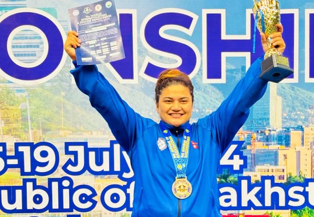 काठमाडौँ- काजखस्तानमा सम्पन्न ११ औं वर्ल्ड स्ट्रेन्थलिफ्टिङ एण्ड इन्क्लाइन बेन्च प्रेस (आइबीपी) च्याम्पियनसिपमा नेपालकी दीपा बिष्टले स्वर्ण पदक जितेकी छिन् ।