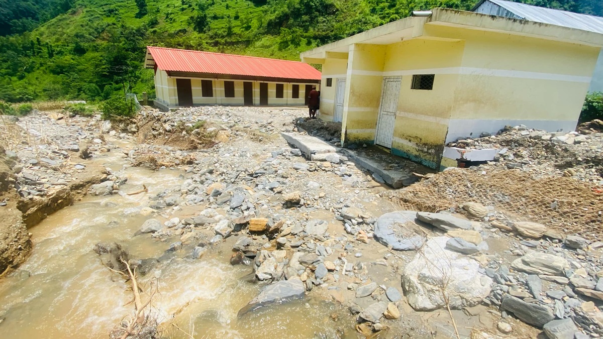 पर्वतको पैयुँ गाउँपालिकाको विद्यालय भवनमा बाढी पस्यो