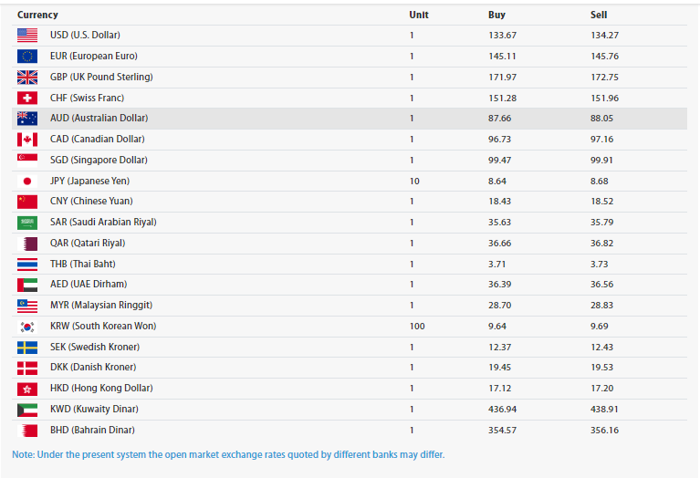 त्यसैगरी, आइतबार अस्ट्रेलियन डलर एकको खरिददर ८७ रुपैयाँ ६६ पैसा र बिक्रीदर ८८ रुपैयाँ ०५ पैसा तोकिएको छ । क्यानेडियन डलर एकको खरिददर भने ९६ रुपैयाँ ७३ पैसा र बिक्रीमा ९७ रुपैयाँ १६ पैसा पाइन्छ ।