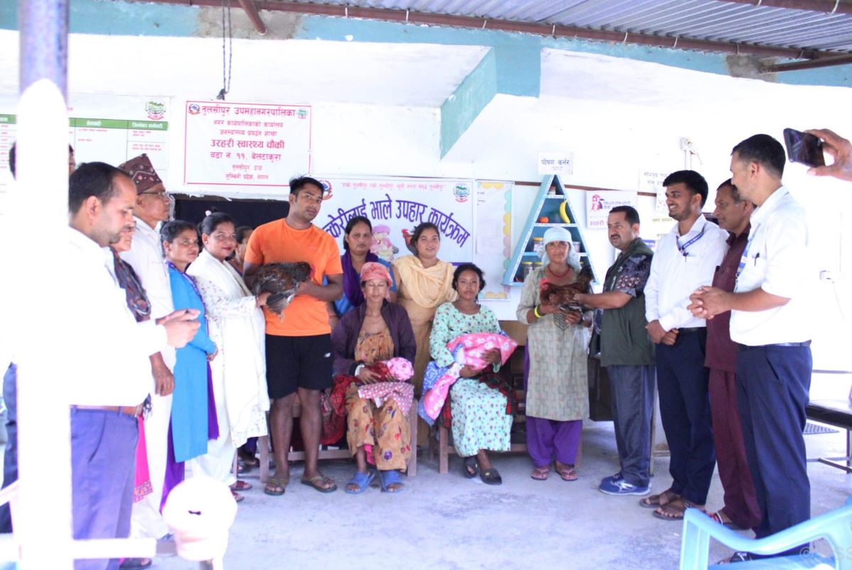 हस्नापुर निवासी २१ वर्षीया सुजाता खड्का र बेल्टाकुरा निवासी ३१ वर्षीया लक्ष्मी चौधरीलाई स्थानीय जातको कुखुरा वितरण गरिएको हो । आमा र बच्चाको स्वास्थ्य राम्रो बनाउनका लागि यो कार्यक्रम सुरु गरिएको वडाध्यक्ष रावतले बताए । “आमा र बच्चाको स्वास्थ्य राम्रो बनाउनका लागि हामीले सन्देश दिन भाले वितरण थालेका हौँ”, उनले भने ।