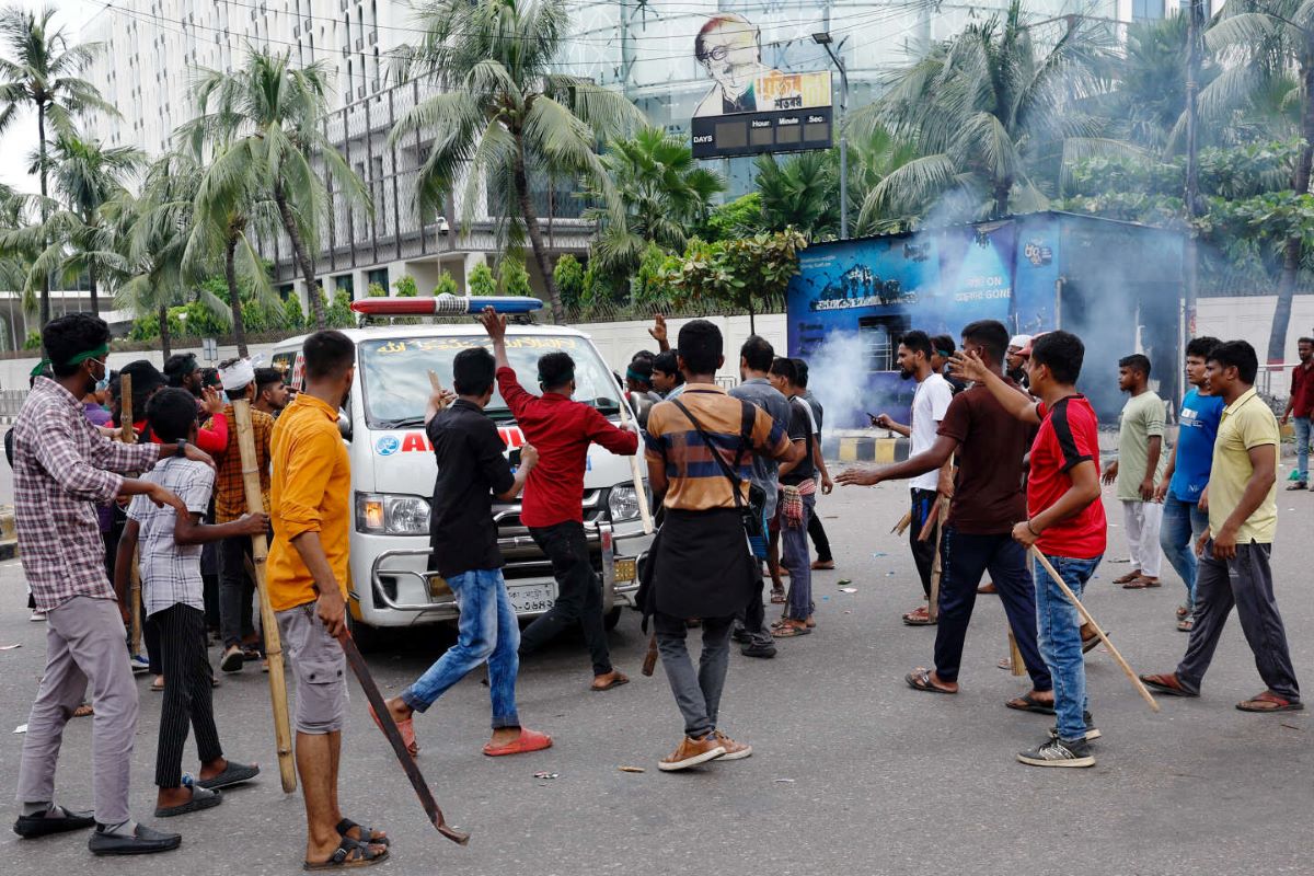 एएफपीद्वारा प्रमाणित सामाजिक सञ्जालमा देखाइएका भिडियोअनुसार ढाकामा खचाखच भीडले घेरिएको बख्तरबन्द कारमाथि प्रदर्शनकारीहरूले बङ्गलादेशी झन्डा लहराएका थिए र त्यसलाई सैनिकले हेरिरहेका थिए ।
