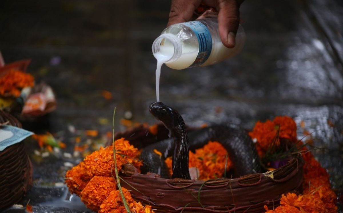 काठमाडौँ – हिन्दु धर्ममा सर्पको विशेष महत्व छ । भगवान शिवको गलाको आभूषण नागराज वासुकी हो भने भगवान विष्णुको ओछ्यान नागराज शेषनाग हो। हाम्रो ठाउँमा सर्पको पूजा गरिन्छ र भूलवश पनि सर्प मारेमा कालसर्प दोषको दोष लाग्छ, जसको समाधान गर्न सजिलो छैन ।