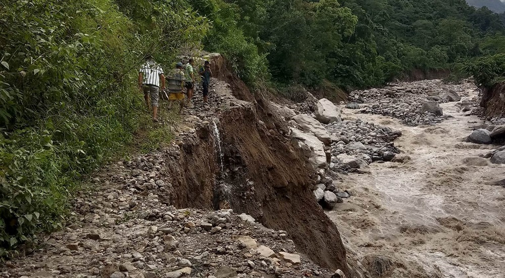 भोजपुर– भोजपुरको इर्खुवाखोलामा आएको बाढीले सडक बगाउँदा साल्पासिलिछो गाउँपालिकामा आवागमन कष्टकर भएको छ ।