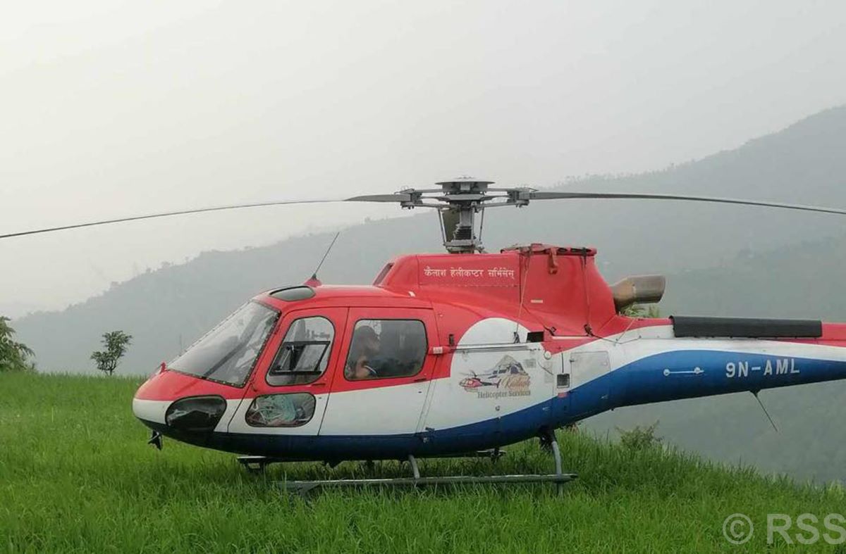 पोखराको मणिपाल अस्पतालबाट दमको बिरामी बोकेर काठमाडौ आउँदै गरेको कैलास हेलिकप्टर सर्भिसेजको ९ एन–ए।एम।एल हेलिकप्टर खाली चौरमा अवतरण गरिएको थाक्रे गाउँपालिका–७ का वडाध्यक्ष युवराज खतिवडाले जानकारी दिए ।