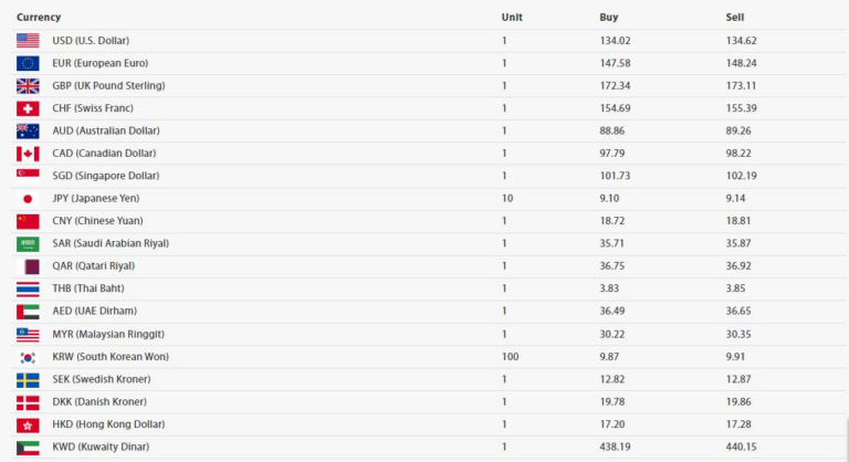 अमेरिकी डलर एकको खरिद दर १३४ रुपैयाँ ०२ पैसा र बिक्री दर १३४ रुपैयाँ ६२ पैसा पुगेको छ। युरो एकको खरिद दर १४७ रुपैयाँ ५८ पैसा र बिक्री दर १४८ रुपैयाँ २४ पैसा रहेको छ।