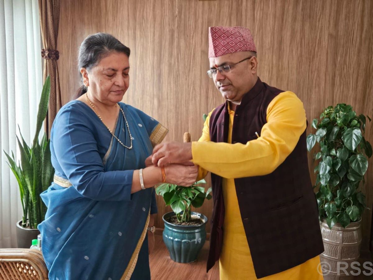काठमाडौँ – पूर्वराष्ट्रपति विद्यादेवी भण्डारीले रक्षाबन्धन ग्रहण गरेकी छन् । उनले वेद विद्याश्रम वनकालीका गुरु शालिकराम ढकालसहित बटुकहरूबाट रक्षाबन्धन ग्रहण गरेकी हुन् ।