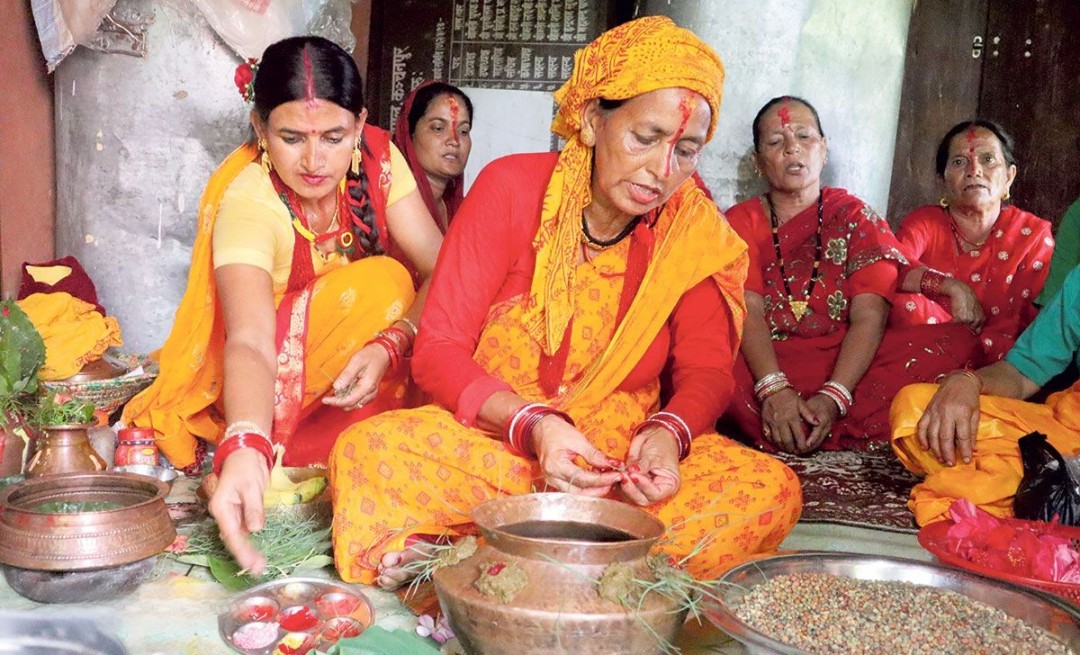 पहिलो दिन तामा तथा पित्तलको भाँडोमा विरुडा राखेर विधिपूर्वक विरुडा ‘पाँच प्रकारका अन्न तथा गेडागुडी’ भिजाइएको थियो । पहिलो दिनलाई ‘विरुडा पञ्चमी’ भन्ने गरिन्छ । दोस्रो दिन आज व्रतालु महिलाहरुले विरुडा धोएर गौरादेवीलाई गौराघरमा भित्र्याउने संयोग परेको छ । तर सबै वर्ष यस्तो संयोग पर्दैन ।