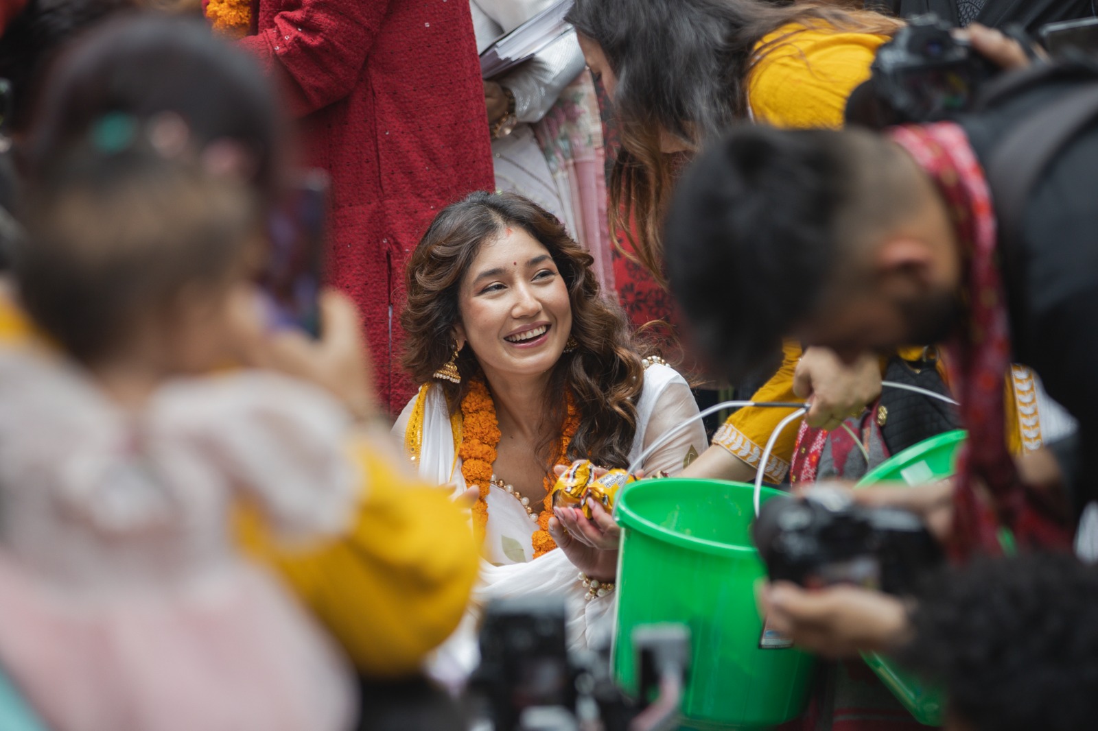 करीब एक घन्टा भन्दा बढी समय कन्याहरुलाई कापी र विस्कुट वितरण गरेकी आँचलले खुशी भएको अनुभव सुनाइन् । यस्तै, फिल्मका नायक विवेक कर्मचार्यले आफूले विगत ४ बर्षदेखि निरन्तर रुपमा ‘कन्या पूजा’मा आएर विभिन्न कुराहरु दान गर्ने गरेको सुनाए ।