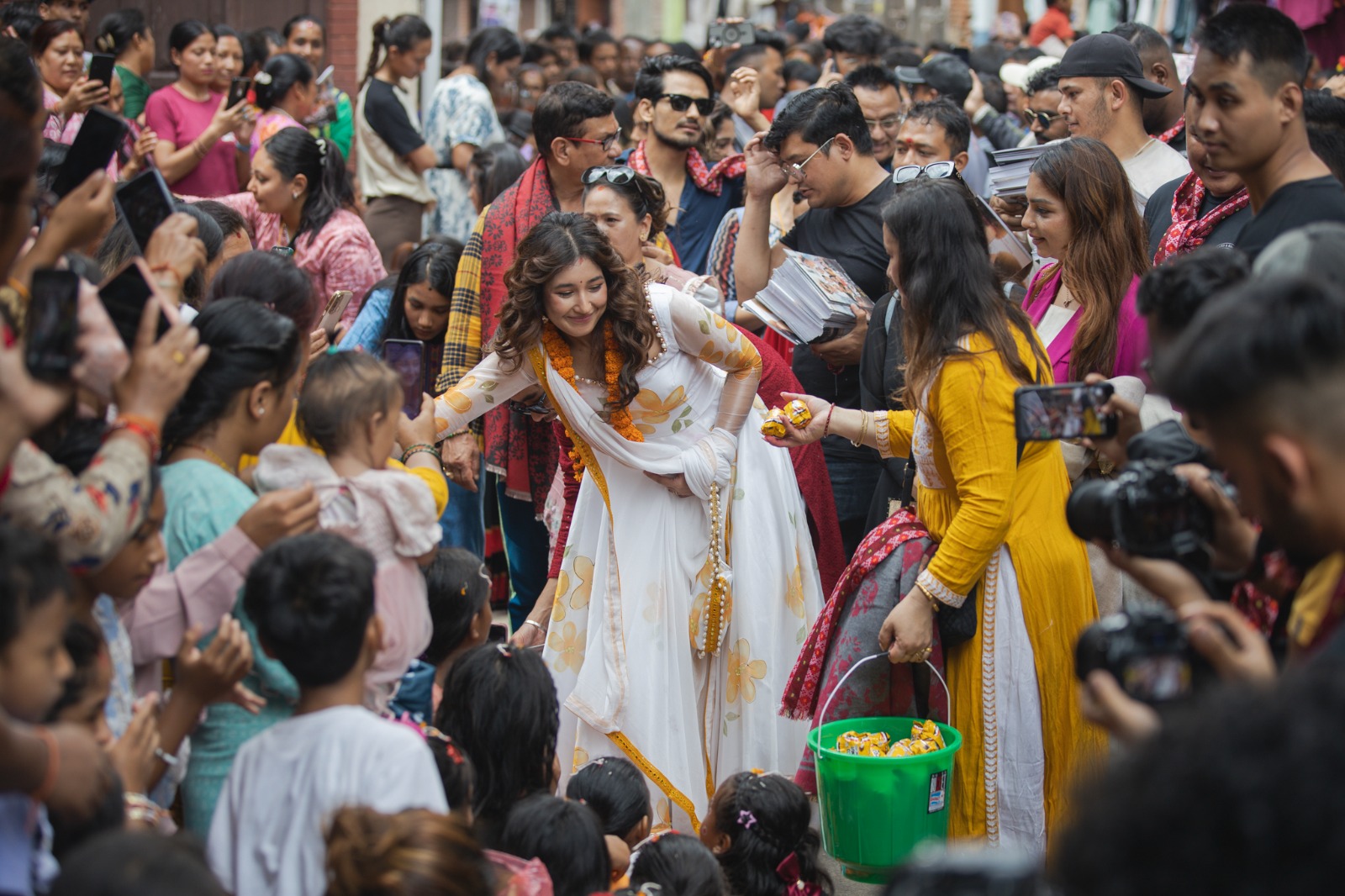 सो अवसरमा फिल्मका कलाकारहरुले हजार बढी बालिकाहरुलाई कापी र खानेकुरा वितरण गरेका थिए । हरेक बर्ष आयोजना हुने ‘कन्या पूजा’मा पहिलो पटक सहभागी हुन पाउँदा निकै खुशी र आनन्द लागेको नायिका आँचल शर्माले बताइन् ।