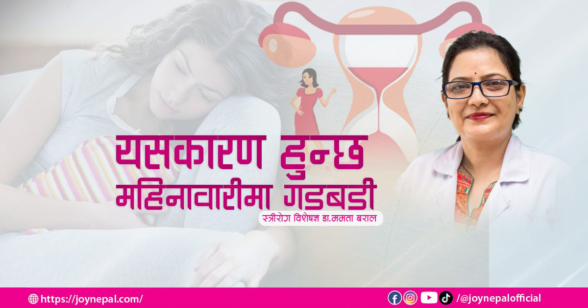 महिनावारी गडबढ किन हुन्छ, के कारणले हुन्छ, यसले भविश्यमा के–कस्ता जटिलताहरु निम्त्याउन सक्छ लगायतका विषयमा स्त्रीरोग विशेषज्ञ डा. ममता बरालसँग जोय नेपालकर्मी सुस्मिता फुयाँलले कुराकानी गरेकी छिन् ।