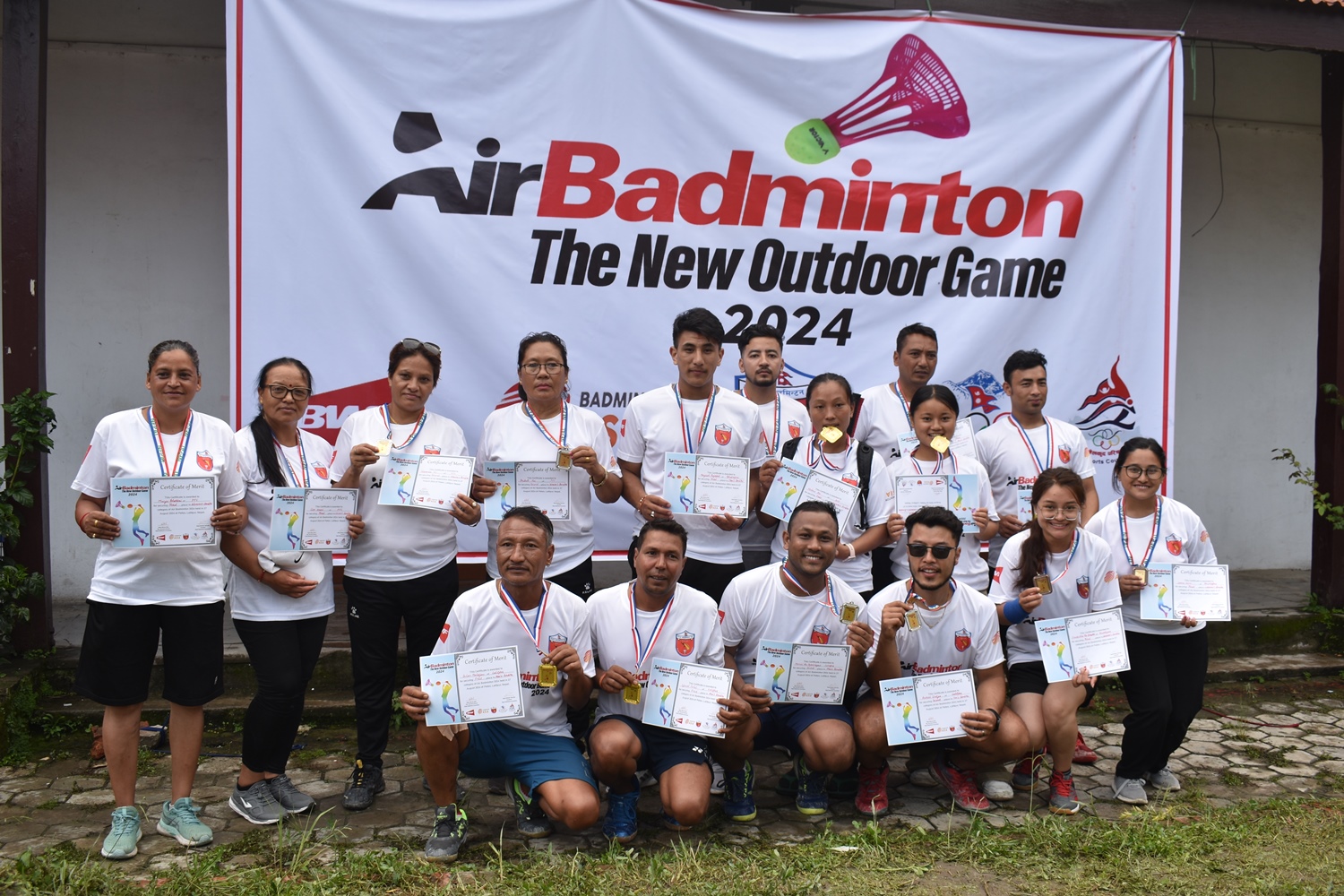 ‘एयर ब्याडमिन्टन’ द न्यू ब्याडमिन्टन गेम २०२४ नामाकरण गरिएको प्रदर्शन खेलमा पुरुष तर्फ १०८ र महिला तर्फ ३४ खेलाडीहरुले प्रतिस्पर्धा गरेका थिए । पुरुष र महिला युगल तर्फ खेलाईएको खेलमा पुरुष युगल तर्फ लगनखेलका विलन मलान र उज्जल दाहालको जोडी प्रथम भएका थिए । यस्तै दोश्रो स्थानमा ललितपुरका मनिष बज्राचार्य र राकेश शाक्यको जोडी, तेश्रो स्थानमा आयुष प्रजापती ‘भक्तपुर’ र एलिस थापा ‘चितवन’ तथा अजय महर्जन र साजन महर्जन ‘थसी’को जोडी रहे ।