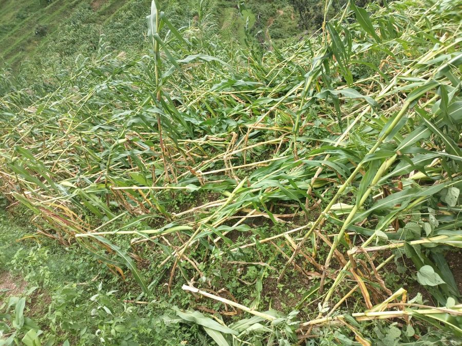 मुख्यबालीका रुपमा रहेको मकैबालीमा हावाहुरीले बोट भाँचिदिएपछि समस्या उत्पन्न भएको किसान हरिबहादुर खत्रीले बताए । यहाँका चार सय भन्दाबढी परिवारले लगाएका सयौँ रोपनी मकैबालीमा क्षति भएपछि खाद्यान्न सङ्कट पर्ने उनले उल्लेख गरे ।