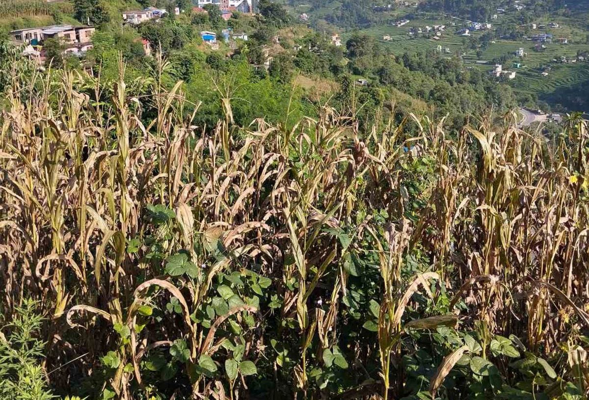 “सबै ठाउँमा मकै भित्र्याएर कोदो लगाउने बेला भयो । परम्परागत मकैको बिउ लगाउनेले अघिल्लो वर्षकै जस्तो फलाएका छन्”, किसान गुरुदत्त गर्तौलाले भने । उनले १८ रोपनी बारीमा आठ किलोग्राम सिपी जातको मकै लगाएका थिए ।
