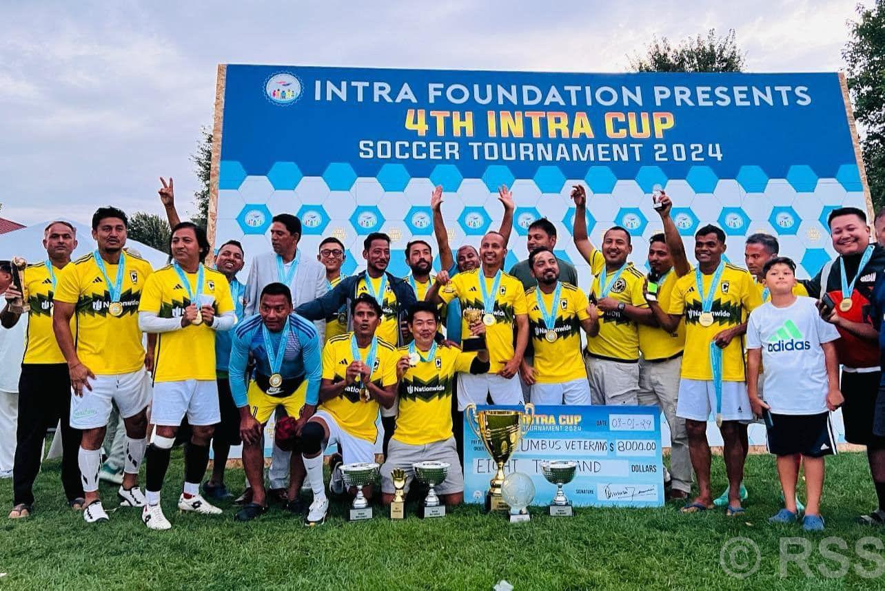 काठमाडौं – अमेरिकामा सम्पन्न इन्ट्रा कप फुटबलको उपाधि युवातर्फ साङ्ग्रिला फुटबल क्लबले हात पारेको छ । सो क्लबले १५ हजार अमेरिकी डलर र १० तोला सुनको रनिङ कप प्राप्त गर्यो ।