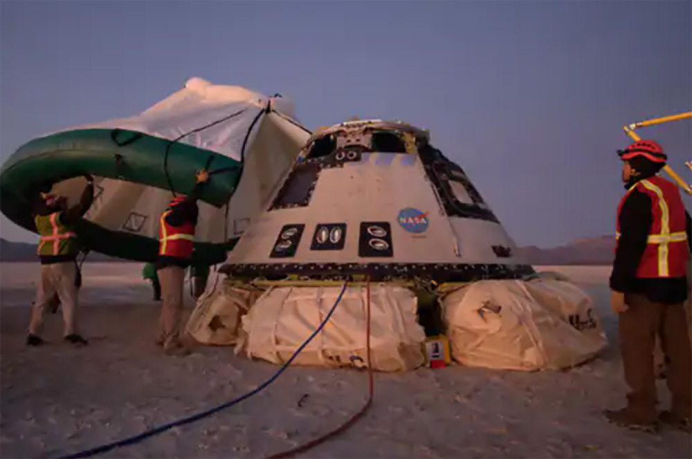 स्टारलाइनरको यान अमेरिकाको न्यू मेक्सिकोको ह्वाइट स्यान्ड स्पेस हार्बर (मरुभूमि) मा अवतरण भएको थियो ।