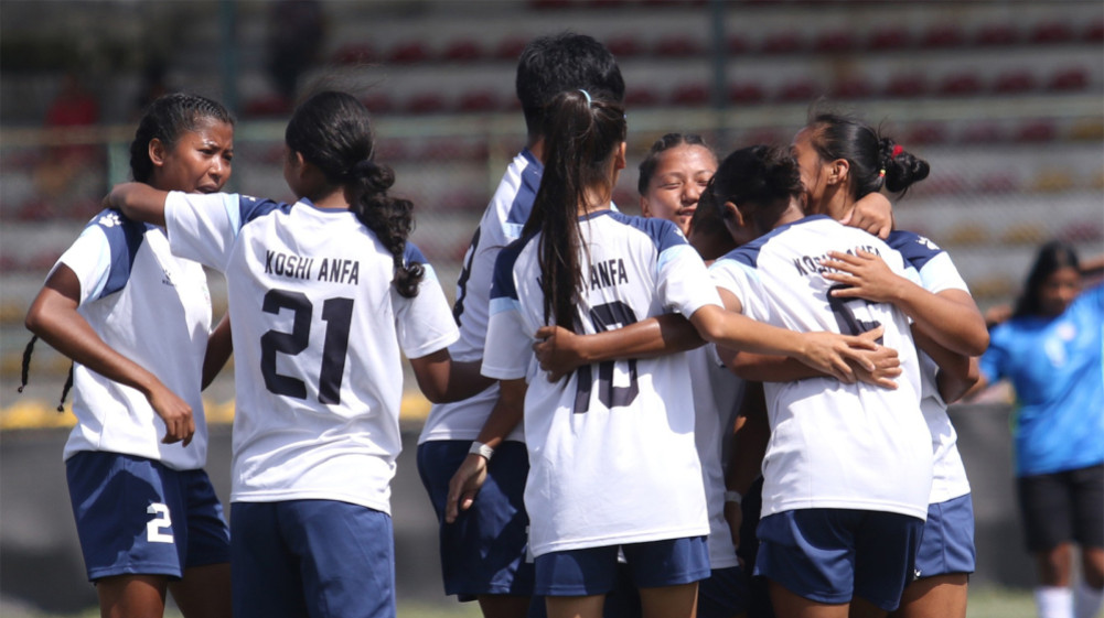 काठमाडौँ – राजधानीमा जारी एन्फा महिला लिग फुटबल प्रतियोगितामा कोशी प्रदेशले कर्णाली प्रदेशलाई पराजित गरेको छ । सातदोबाटोस्थित एन्फा कम्प्लेक्समा आज भएको खेलमा कोशीले कर्णालीलाई ४–० गोलअन्तरले हराउँदै जित हासिल गरेको हो ।