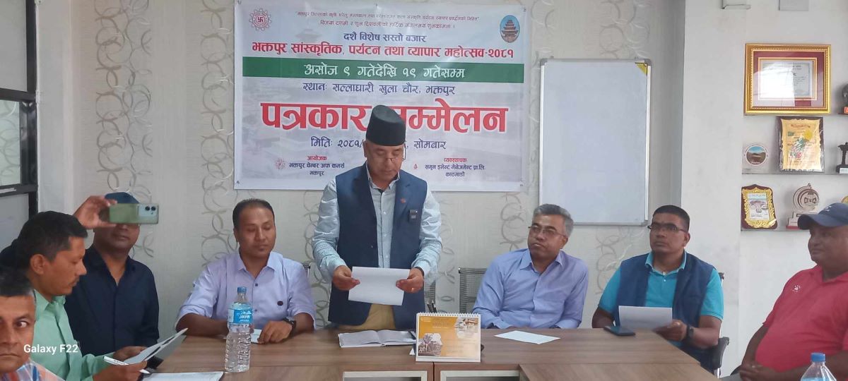 भक्तपुर नगरपालिका वडा नं १ सल्लाघारीस्थित खुल्ला मैदानमा २०८१ आश्विन ९ गतेदेखि १९ गते तवानुसार सन् २०२४ को सेप्टेम्बर २५ देखि अक्टोबर ५ सम्म ‘११ विवसीय’ हुन लागेको हो । त्यस अनुसार भक्तपुर साँस्कृतिक, पर्यटन तथा व्यापार महोत्सव २०८१ आयोजना गर्ने तयारी गरेको सोमबार आयोजित पत्रकार सम्मेलन गरी जनाइयो ।