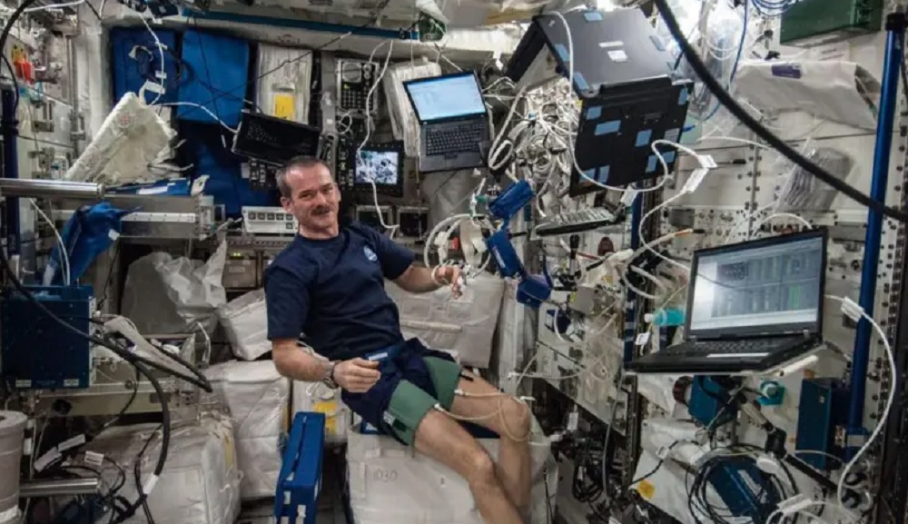 लामो समय आइएसएसमा आउने अन्तरिक्ष यात्रीहरू कामको बीचमा हरेक दिन दुई घण्टा व्यायाम गर्छन् । हड्डीको घनत्व शून्य गुरुत्वाकर्षणमा घट्न थाल्छ ।