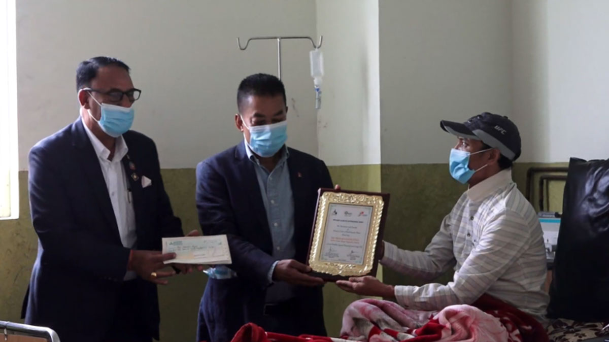काठमाडौँ – दृष्टि साप्ताहिकका सम्पादक शम्भु श्रेष्ठले रोटरी क्लब अफ काठमाडौँ वेष्टसँगको सहकार्यमा मिर्गौलापीडित पत्रकार पिबी दियालीलाई नगद रु एक लाख ८२ हजार प्रदान गरेका छन् ।