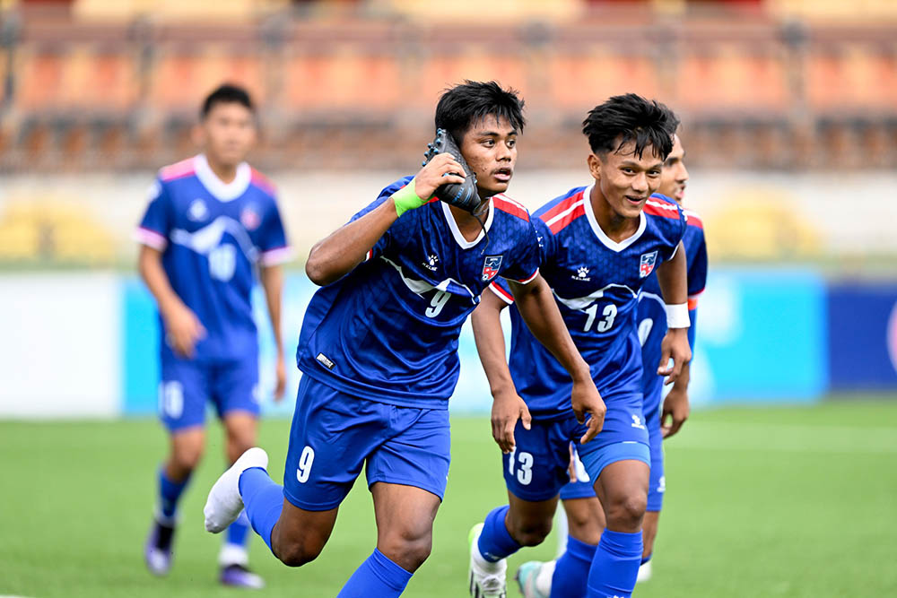 काठमाडौँ – नेपाल साफ यू-१७ च्याम्पियनसिपको सेमिफाइनलमा पुगेको छ । बुधबार समुह चरणको अन्तिम खेलमा नेपालले घरेलु टिम भुटानलाई २-१ गोल अन्तरले पराजित गर्दै सेमिफाइनलमा पुगेको हो । नेपालले १-० गोलले पछि परेको अवस्थामा खेलमा कमब्याक गर्दै जित हासिल गरेको हो ।