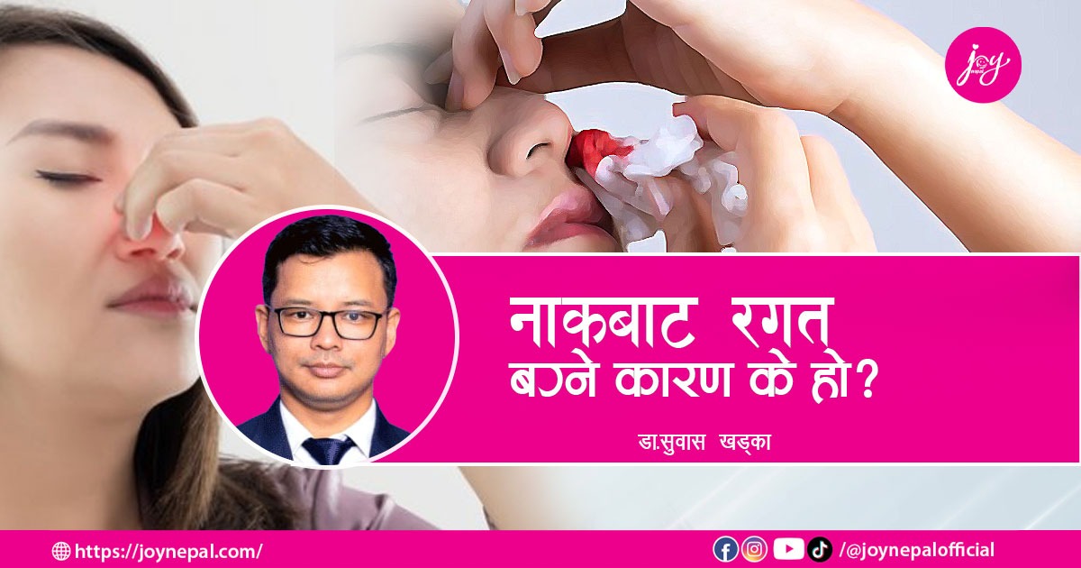 नाकबाट रगत बग्ने कारण के के हुन्? किन नाकबाट रगत बग्छ? यसका निदानका उपाय के छन् लगायतका विषयमा भने धेरै जानकार नभएको पाइन्छ । यसै सन्दर्भ वरिपरि रहेर नाक, कान तथा घाँटी रोग विशेषज्ञ डा. सुवास खड्कासँग जोय नेपालका लागि सुस्मिता फुयाँलले गरेको कुराकानी: