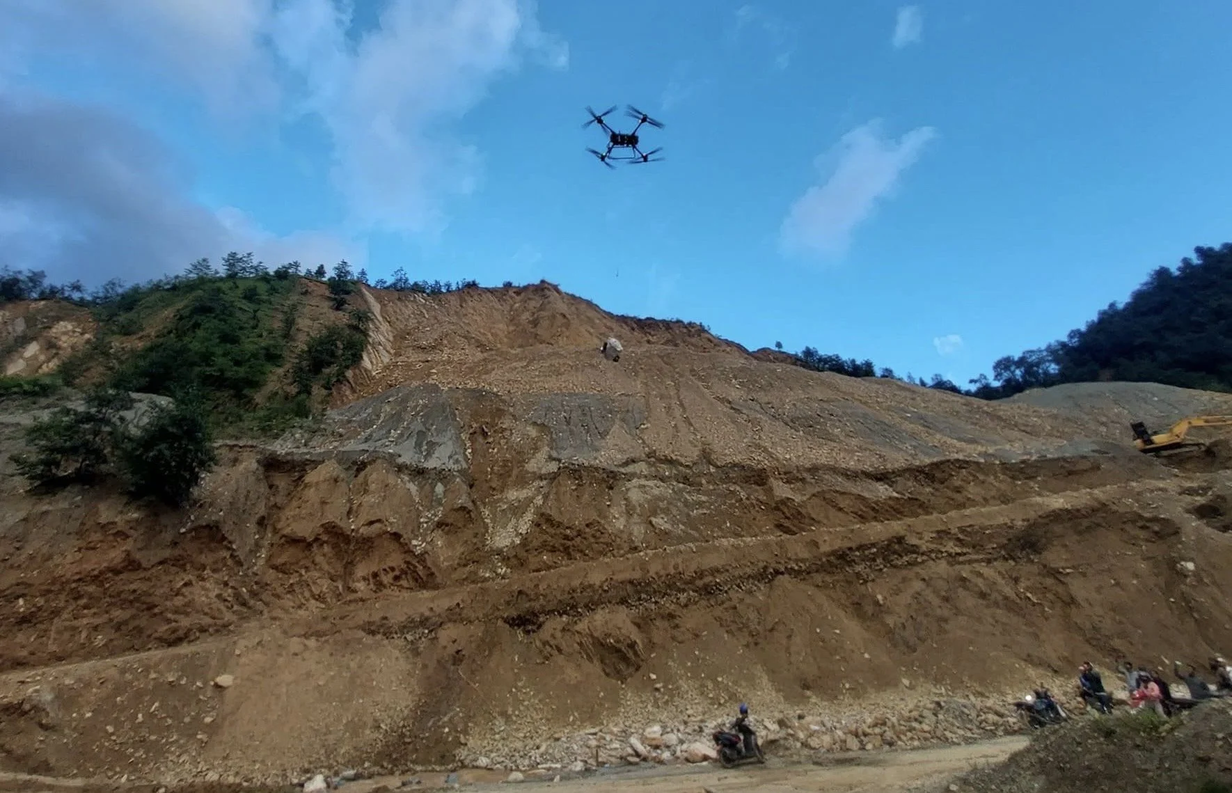 पनौती बजारबाट उक्त गाउँ पुग्ने सडक क्षतिग्रस्त भएकाले १२ नं वडास्थित भूमिडाँडाबाट ड्रोन उडाइ सामग्री पठाउन थालिएको हो । सामाजिक अभियन्तासमेत रहेका हुमागाईँका अनुसार ड्रोनमार्फत एकपटकमा ६५ किलोग्रामसम्म खाद्यान्न सामग्री ढुवानी गर्न सकिनेछ ।