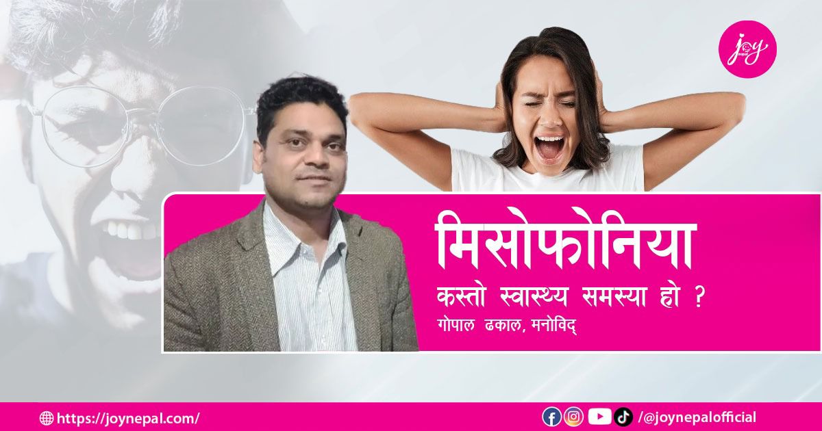 तर हामीमध्ये केहीलाई यी आवाजले तनाव दिन्छ, झर्को लाग्छ र रिस उठ्छ । यस प्रकारको समस्या नै ‘मिसोफोनिया’ हो । ‘मिसोफोनिया कस्तो स्वास्थ्य समस्या हो ?, यो के कारणले हुन्छ, कस्ता जटिलताहरु निम्त्याउन सक्छ ?, उपचार के छ ?’ लगायतका विषयमा मनोविद गोपाल ढकालसँग जोय नेपालका लागि सुस्मिता फुयाँलले गरेको कुराकानीको सम्पादित अंश