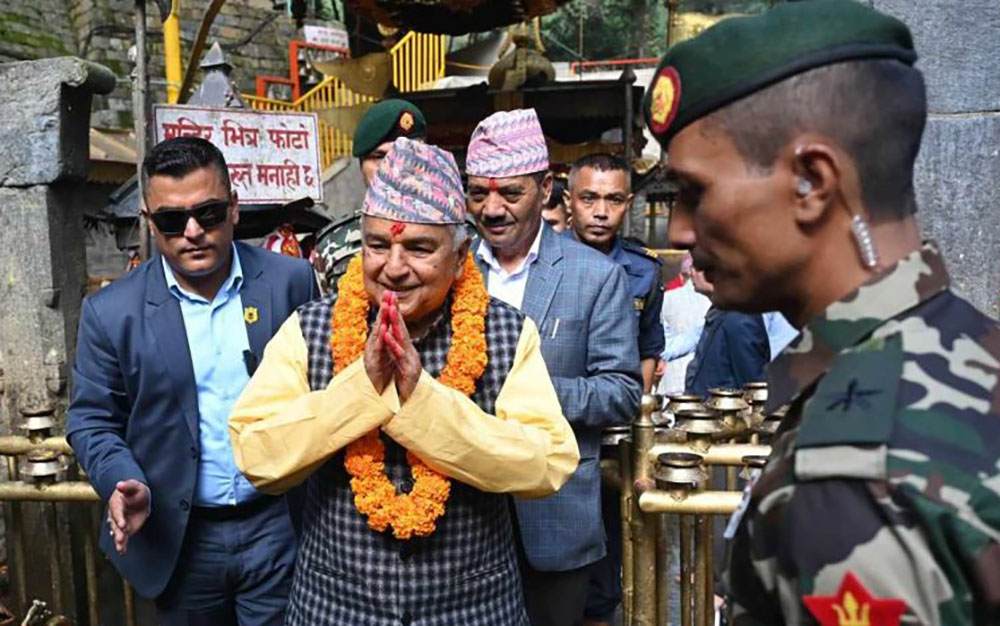 राष्ट्रपति पौडेललाई नवदुर्गा मन्दिरका मूल नाइके सूर्यमान वनमाला, मूल पुजारी रमेश कर्माचार्यलगायत सहायक नाइकेहरुले नवदुर्गाको प्रसाद प्रदान गरेका थिए । राष्ट्रपति पौडेलले नवदुर्गा देवगणका मूर्ति अवलोकन गरी दर्शन समेत गरेका थिए ।