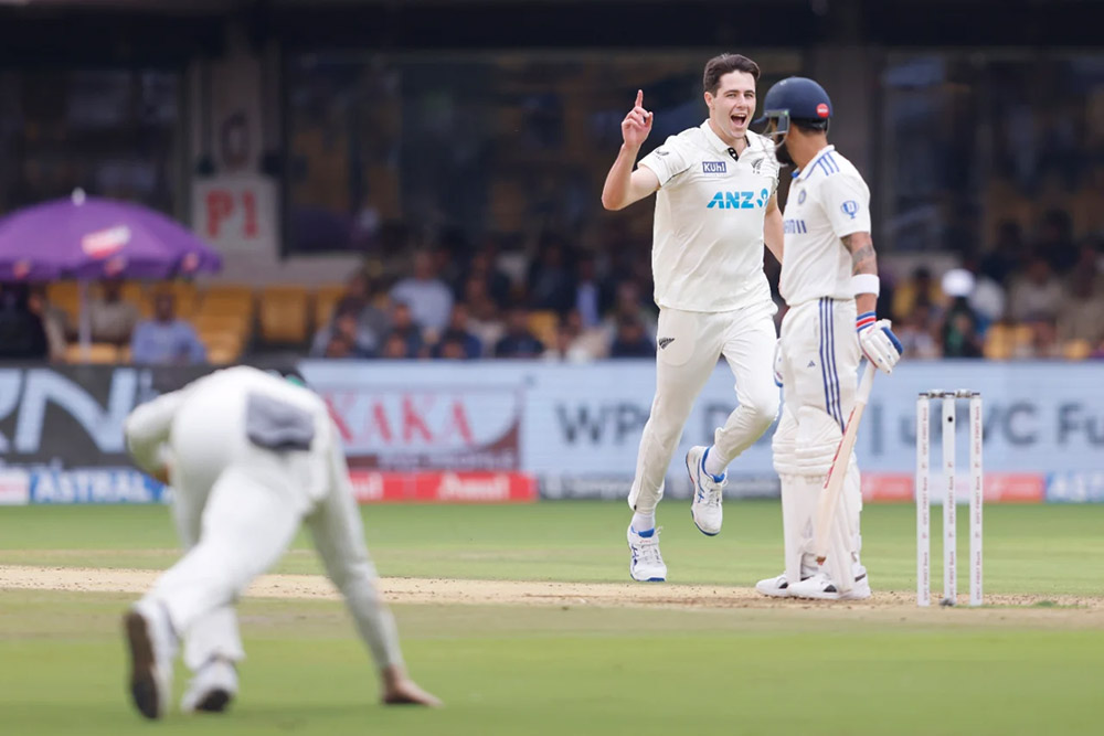भारतको ब्याटिंग लाइन ध्वस्त गर्नेक्रममा न्यूजील्याण्डका म्याट हेनरीले ५ विकेट लिए भने विलियम पिटरले ४ विकेट तथा टिम साउथीले एक विकेट लिएका छन् ।
