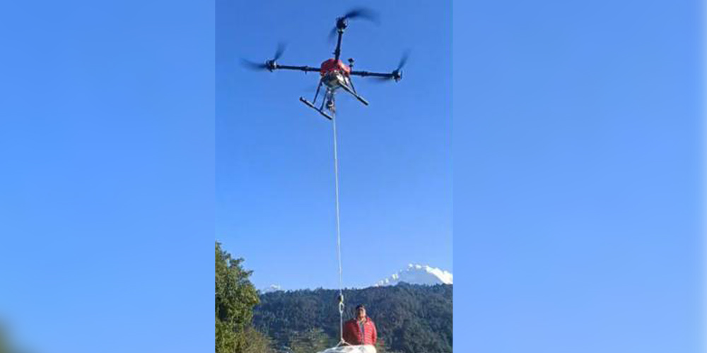 “केन्द्रका प्राविधिक टोलीले शुक्रबार र शनिबार नागीबाट मोहरेडाँडामा ड्रोनमा झुण्ड्याएर सामान पठाएर परीक्षण गर्नुभएको थियो”, उनले भने, “पहाडी र विपद् प्रभावित क्षेत्रमा औषधि र उपभोग्य अत्यावश्यक सामान ढुवानी गर्न ड्रोन उपयोगी देखिए ।”