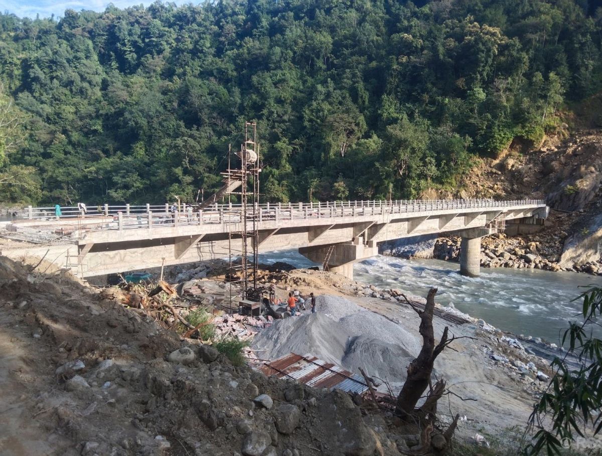 “पुल निर्माण सकिएको छ । अब लिङ्क रोडको काम एक महिनामा सक्छौँ”, राईले भने, “भुक्तानीका लागि डिजाइन परिवर्तन भएको पत्र पाएका छैनौँ ।” नदीमा पायल फाउन्डेसनबिना पुलको पिलर ठड्याउन नसकेपछि सडक विभागले डिजाइन परिवर्तन गरेको थियो । सोही अनुसारको भुक्तानी स्वीकृति नभएको बताउँदै डिजाइन परिवर्तन गर्नुपरेकाले तीन पटकसम्म म्याद थप्नुपरेको उनले जानकारी दिए ।