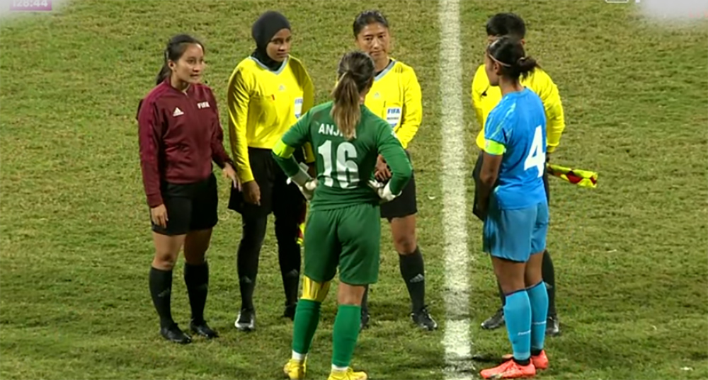 त्यसअघि खेलको ५०औं मिनेटमा रेखा पौडेलले दोहोरो पहेलो कार्ड पाउदै रातो कार्ड पाएपछि दर्शकले अवरोध गरेका कारण खेल १० मिनेटभन्दा बढी अवरुद्ध भएको थियो ।