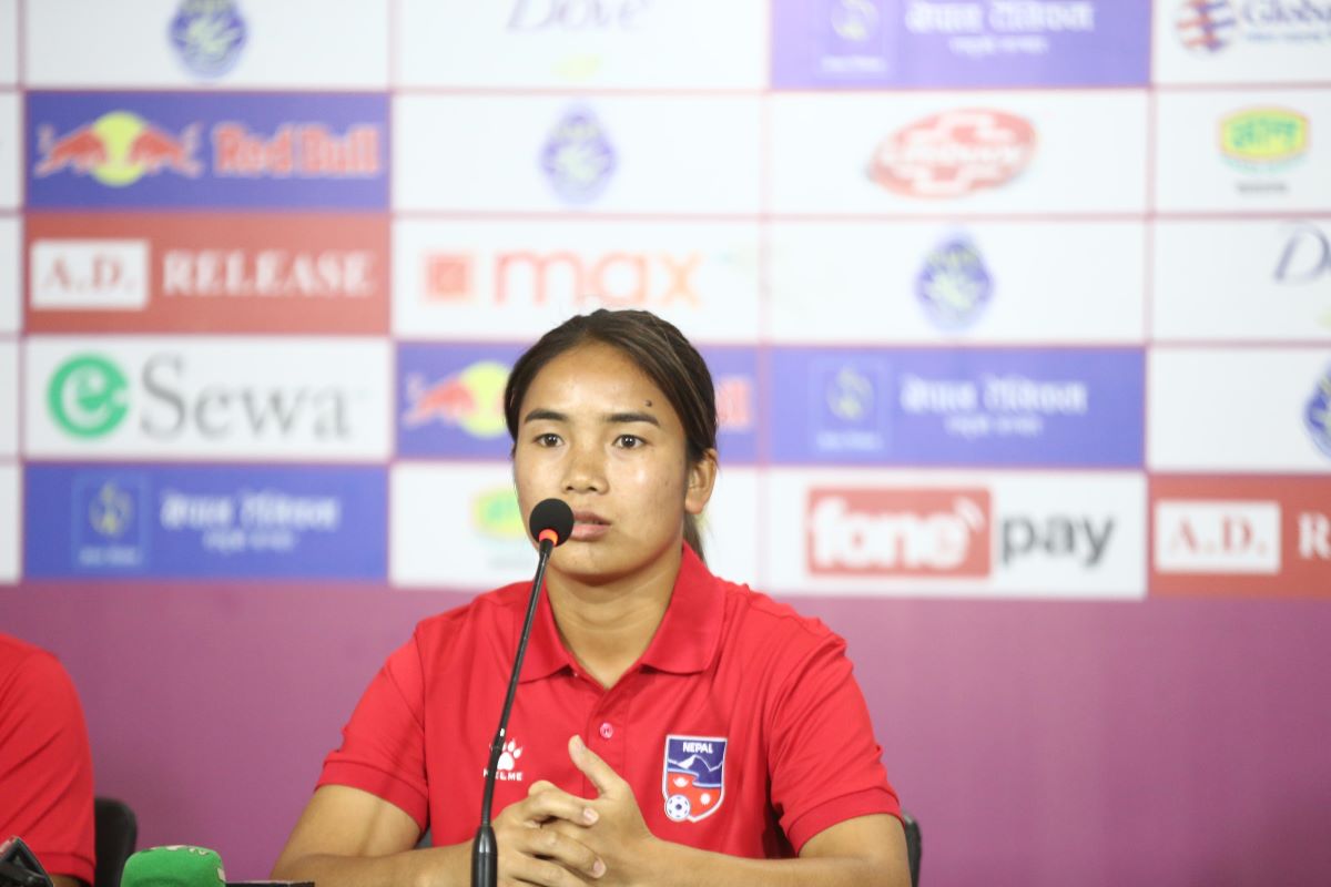 नेपाली राष्ट्रिय महिला फुटबल टिमकी कप्तान एन्जिला तुम्बापो सुब्बाले उपाधि जित्ने गरि खेल्ने बताइन् । कप्तान एन्जिलाले नेपालको लागि उपाधि जित्ने अवसर भएकाले यो अवसर खेर नफाल्ने बताइन । उनले नेपाली टिम अहिले एकजुट भएर खेलिरहेकोले फाइनलको नतिजा आफ्नो पक्षमा हुनेमा विश्वस्त रहेको बताइन ।