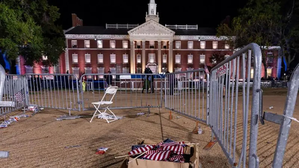 चुनावी नतिजा सार्वजनिक भएपछि कमला ह्यारिसका समर्थकहरू हार्वर्ड विश्वविद्यालयबाट बाहिरिए र उनी आइनन् । जसका कारण यहाँका कुर्सीहरु खाली देखिए । हारसँगै ह्यारिसले आफ्ना समर्थकलाई सम्बोधन गरिनन् ।