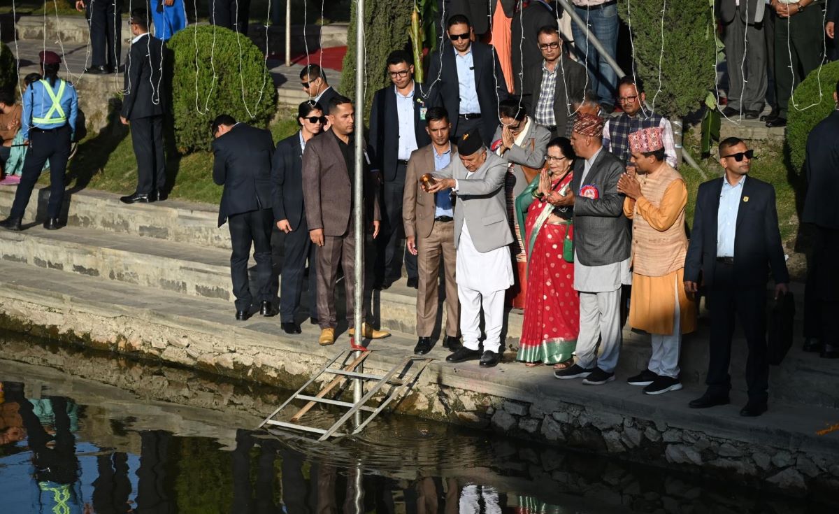 राष्ट्रपति पौडेल र प्रथम महिला सविता पौडेलले पूजास्थलमा अस्ताउँदो सूर्यलाई अर्घदान गरेका थिए । राष्ट्रपति पौडेल सुरुमा पशुपति क्षेत्रस्थित गुह्वेश्वरी मन्दिर अघि वाग्मती किनारमा निर्माण गरिएको छठ पूजास्थल पुगेका थिए । त्यहाँ उनले सूर्यसहित छठी माताको पूजाआराधना एवं अर्घदान गरे ।