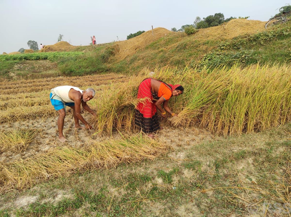 तिहार र छठ सकिएसँगै किसान धान काट्न र भित्र्याउन व्यस्त