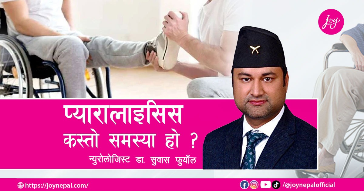 ‘के शरीरको अंग नचल्नु नै प्यारालाइसिस हो त ?, के कारणले हुन्छ प्यारालाइसिस ?,यस्तो समस्या हुन नदिन के गर्ने’लगायतका सन्दर्भमा ग्राण्डी अस्पतालमा कार्यरत न्युरोलोजिस्ट डा. सुवास फुयाँलसँग जोय नेपालकर्मी सुस्मिता फुयाँलले गरेको कुराकानी: