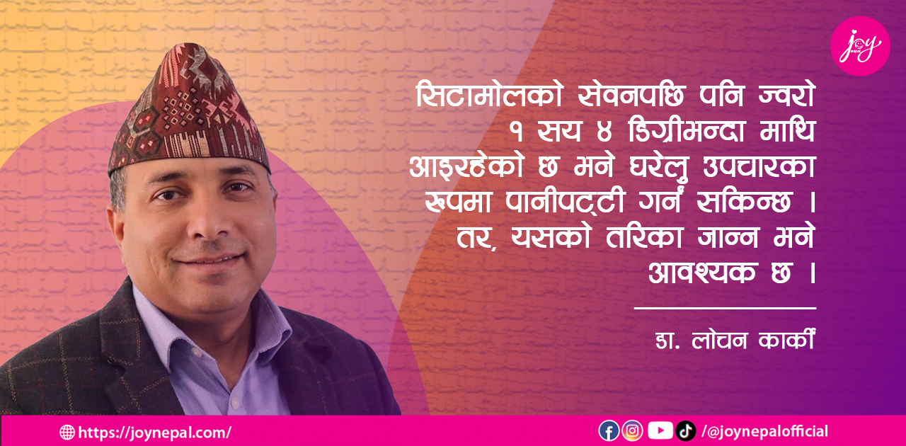 ज्वरो कस्तो अवस्थामा आउँछ ?, अत्याधिक ज्वरो आउँदा प्राथमिक घरेलु उपचार कसरी गर्ने ?, ज्वरो आएको समयमा के खाने–के नखाने लगायतका विषयमा फिजिसियन डा. लोचन कार्कीसँग जोय नेपालका लागि सुस्मिता फुयाँलले गरेको कुराकानी: