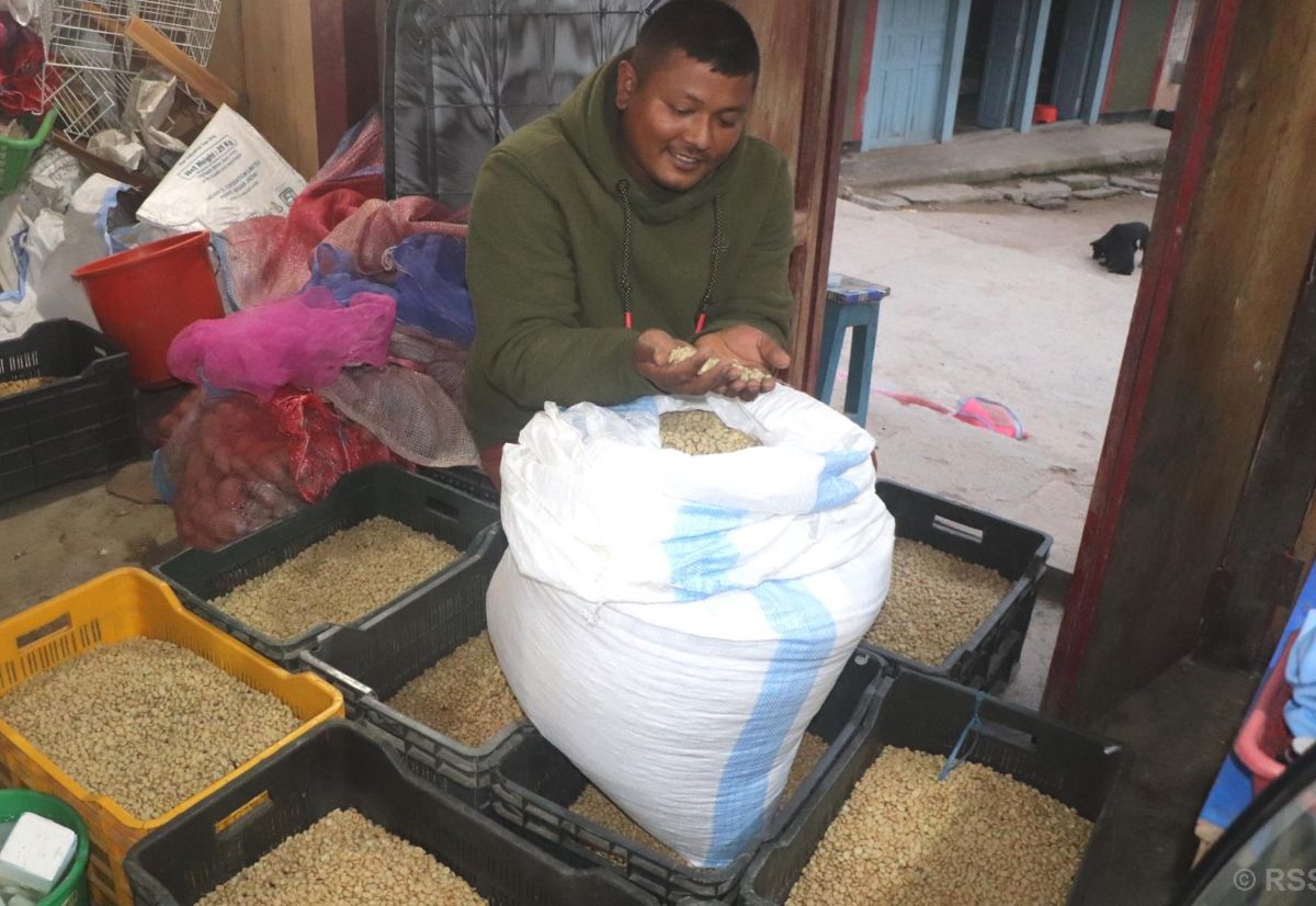 स्थानीय किसानले उत्पादन गरेको कफी घरबाट नै प्रतिकेजी रु एक सयमा बिक्री हुने गरेको छ । राम्रो फलेको कफीको एक बोटले २५ केजीदेखि ३० सम्म उत्पादन दिने व्यवसायी श्रेष्ठले बताए। प्रशोधन गरेको कफीको दाना सहरका बजारमा प्रतिकेजी रु पाँच सयमा बिक्री हुने गरेको उनले जानकारी दिए । यहाँका करिब दुई सयजना किसानले कफीखेती गरिरहेको श्रेष्ठले बताए ।