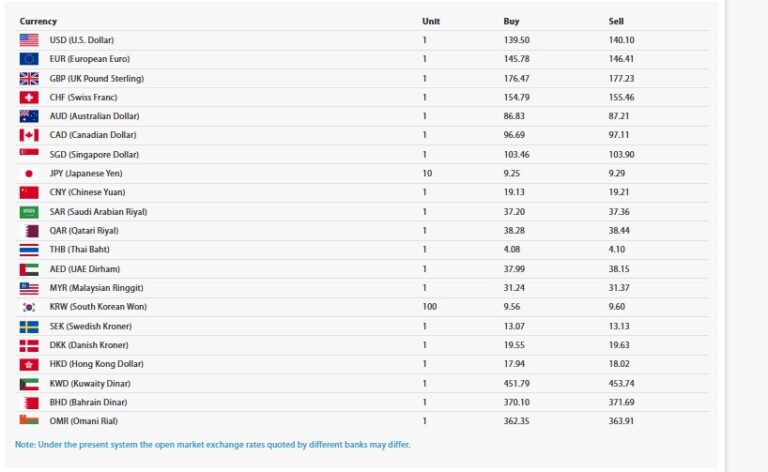 राष्ट्र बैंकले हङकङ डलर एकको खरिददर १७ रुपैयाँ ९४ पैसा र बिक्रीदर १८ रुपैयाँ दुई पैसा, कुवेती दिनार एकको खरिददर चार सय ५१ रुपैयाँ ७९ पैसा र बिक्रीदर चार सय ५३ रुपैयाँ ७४ पैसा, बहराइन दिनार एकको खरिददर तीन सय ७० रुपैयाँ १० पैसा र बिक्रीदर तीन सय ७१ रुपैयाँ ६९ पैसा, ओमनी रियाल एकको खरिददर तीन सय ६२ रुपैयाँ ३५ पैसा र बिक्रीदर तीन सय ६३ रुपैयाँ ९१ पैसा निर्धारण गरेको छ । त्यस्तै, भारतीय रुपैयाँ एक सयको खरिददर एक सय ६० रुपैयाँ र बिक्रीदर एक सय ६० रुपैयाँ १५ पैसा तोकेको छ ।