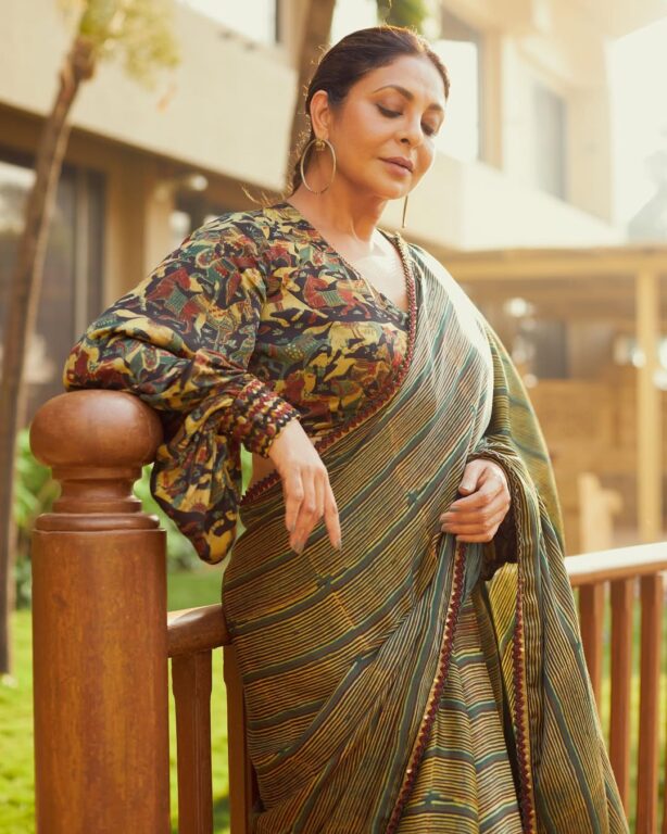 चाहे त्यो छापिएको साडी होस् वा ब्लाउज, तिनीहरू सधैं ट्रेन्डको हिस्सा बन्छन्। यद्यपि, गर्मी मौसममा फ्लोरल प्रिन्टहरू एकदमै सुन्दर देखिन्छन्। शेफाली शाहको यो प्रिन्टेड फुल स्लिभ ब्लाउज एकदमै सुन्दर ढाँचा जस्तो देखिन्छ। विपरीत प्रिन्ट भएको साडी र ब्लाउजको संयोजन धेरै लोकप्रिय छ।