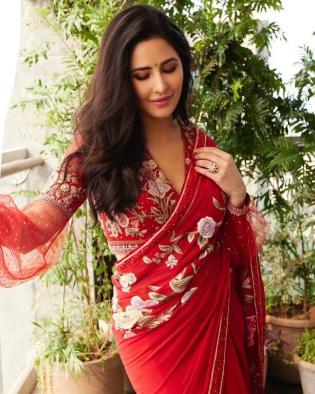 कट्रिना कैफको यो ब्लाउज डिजाइन धेरै फरक छ। यसको आधा भाग परेशनर कपडाबाट बनेको छ र अर्को आधा भागमा कढ़ाई गरिएको कपडाबाट बनेको बाहुला छ। यसको छेउको भाग अगाडि छ र पफ लुकमा छ। यो फुल स्लिभ ब्लाउज डिजाइन फरक शैलीको लगाउन चाहनेहरूका लागि उत्तम हो।