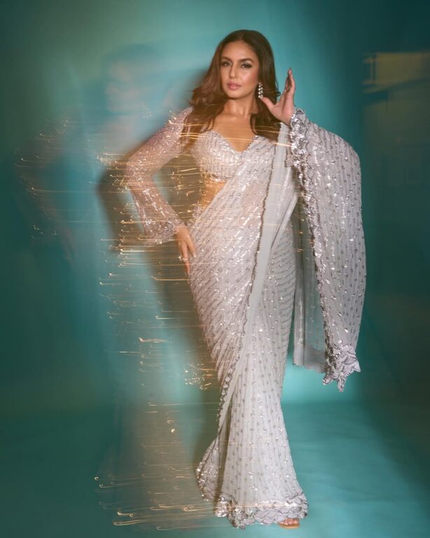 हुमा कुरेशीको यो फुल स्लिभ ब्लाउज फ्लेर्ड स्टाइलमा छ, उनको लुक धेरै सुन्दर देखिन्छ। उनको ब्लाउजमा प्यारो नेकलाइन छ र यो पातलो र पारदर्शी कपडाबाट बनेको छ। अभिनेत्रीले चिल्लो कपालको स्टाइल लगाएकी छिन्, जसले उनको लुकलाई धेरै बढाइरहेको छ।