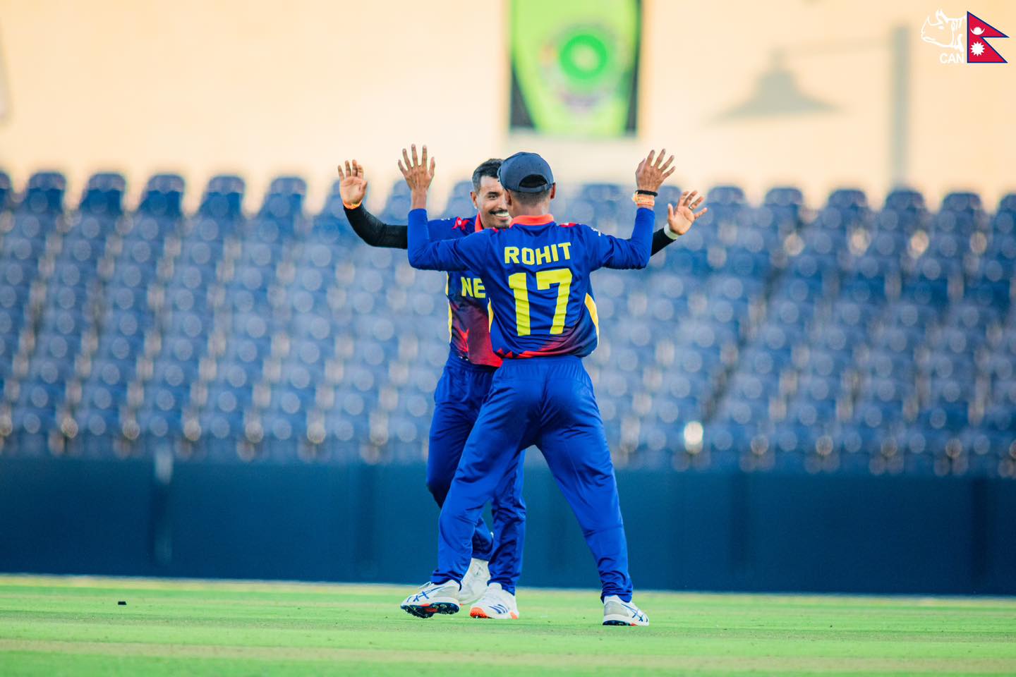नेपालको प्लेइङ–११ मा कप्तान रोहितकुमार पौडेलसहित उपकप्तान दीपेन्द्र सिंह ऐरी, आसिफ शेख, कुशल भुर्तेल, भीम सार्की, आरिफ शेख, गुलशन झा, सन्दीप लामिछाने, सोमपाल कामी, करण केसी र ललित नारायण राजवंशी छन् ।