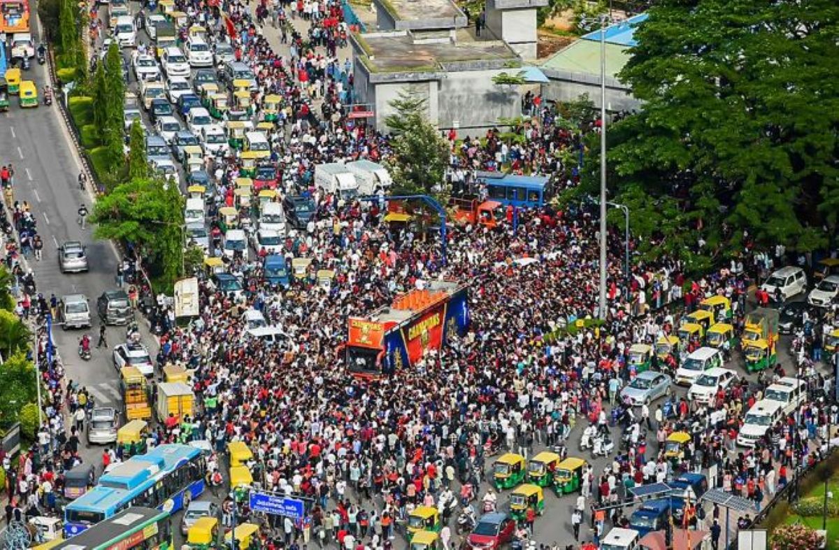 कर्नाटक राज्य क्रिकेट संघले रोयल च्यालेन्जर्स बैंगलोरलाई आइपीएल २०२५ मा ऐतिहासिक जित हासिल गरेपछि एक अभिनन्दन समारोह आयोजना गरेको थियो, जसमा हजारौं रोयल च्यालेन्जर्स बैंगलोर प्रशंसकहरू आएका थिए।