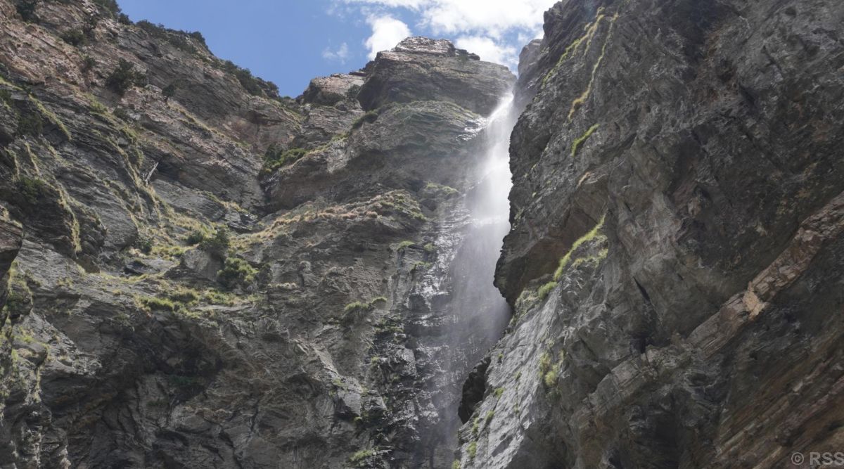 यहाँको यो झरना समुन्द्री सतहको करिब चार हजार ५०० मिटर अग्लो विशाल चट्टानको पहाडसँगै जोडिएको सानो गल्छीबाट बग्ने गरेको छ । हिउँदयामको पुस, माघ र फागुनमा पूरै झरनाको पानी बरफ बनेर सिङ्गो पहाड नै सेताम्मे हुन्छ ।