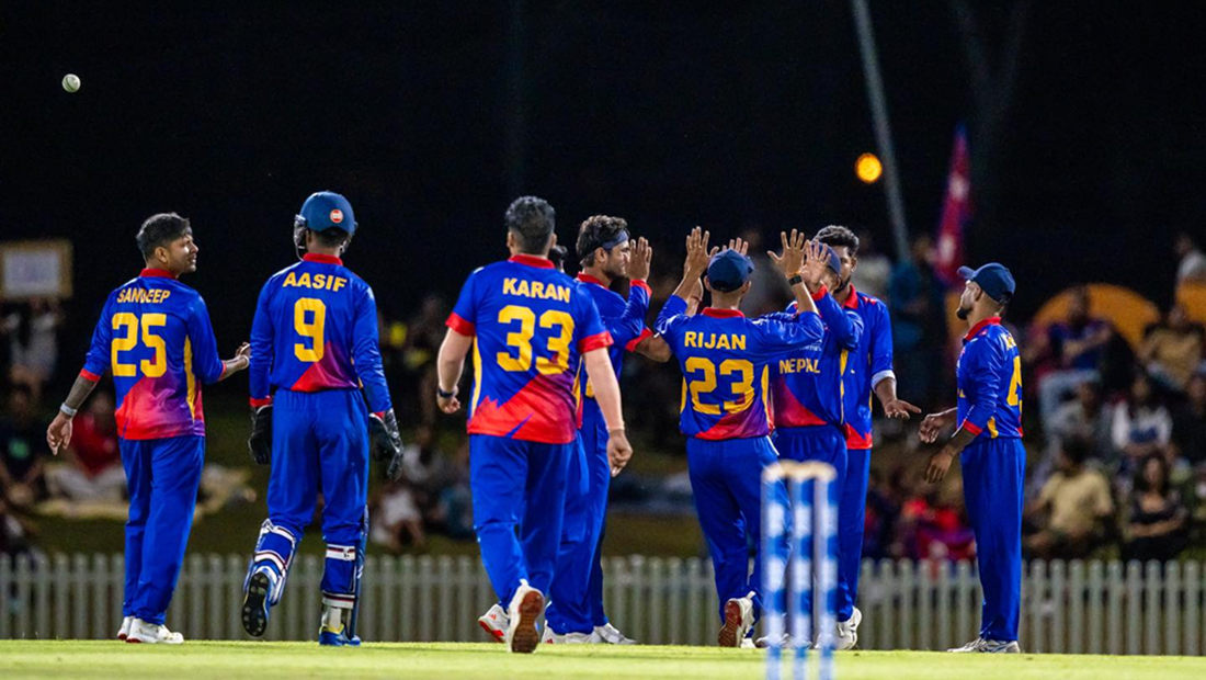 नेपालका लागि सन्दीप लामिछानेले तीन विकेट लिए भने सोमपाल कामी र शाहब आलमले समान एक एक विकेट लिए । नेपाल अहिले जवाफी ब्याटिङमा उत्रेको छ ।
